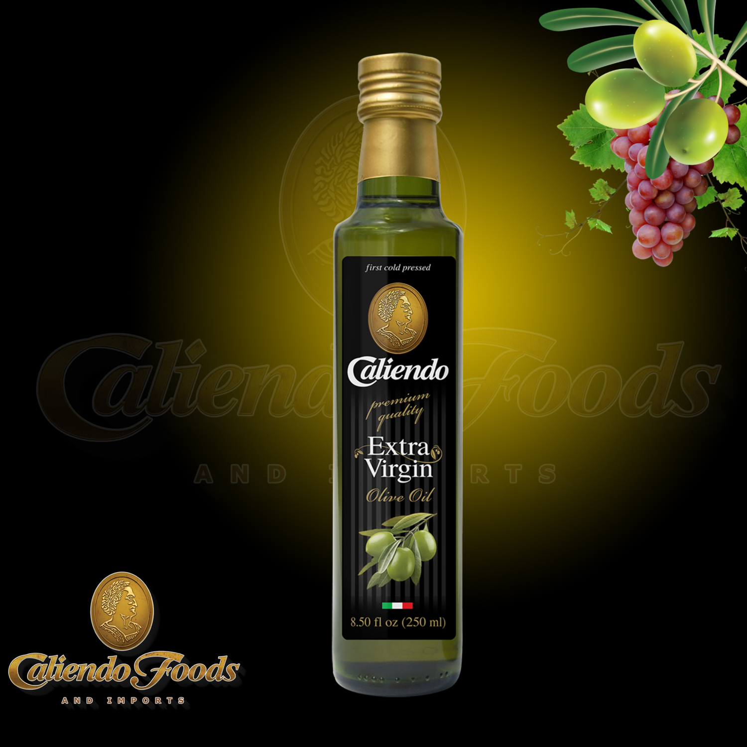 Packaged in our beautiful 250 ml bottle, CALIENDO Extra Virgin Olive Oil is genuine, authentic extra virgin, first cold pressed, very low acidity, with very high antioxidants and premium quality. Our olive oil contains some of the best extra virgin olive oils, cold production sourced from the finest groves in Italy, Spain, Argentina, Australia, Chile, Greece, Peru, Portugal, Tunisia, Turkey, Uruguay & Morocco. CALIENDO Extra Virgin Olive Oil is the best brand for all of your gourmet & specialty dishes and makes an amazing gift. It’s true olive taste, distinct flavor and cooking properties makes is perfect for dipping bread, dressing, dips, cold dishes, and even cooking and baking – a Chef’s Essential!
